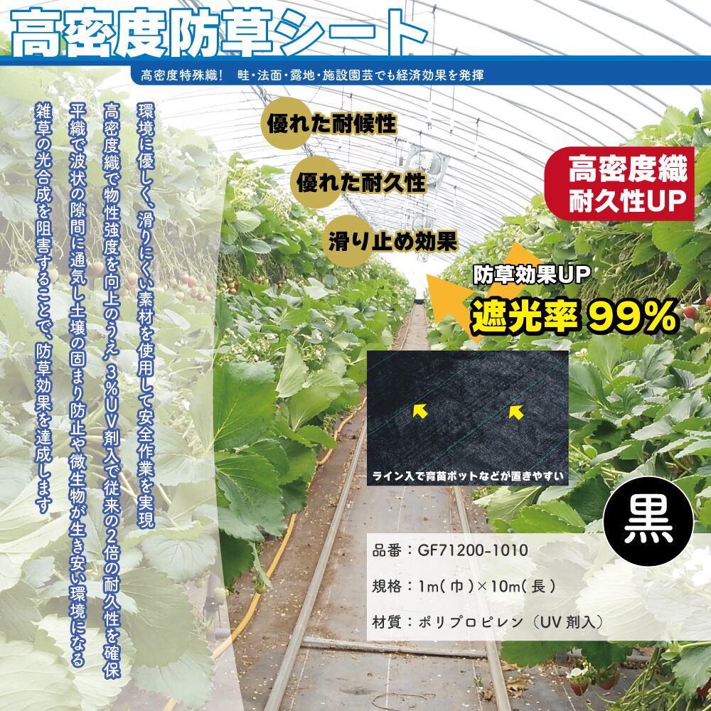 高密度防草シート 防草シート 除草シート 雑草防止シート 1m×10m UV剤入り 高透水性 高密度織 園芸用・工事用・家庭菜園・農業用向けロールタイプ巾1m×長さ10m カラー黒 遮光率99%